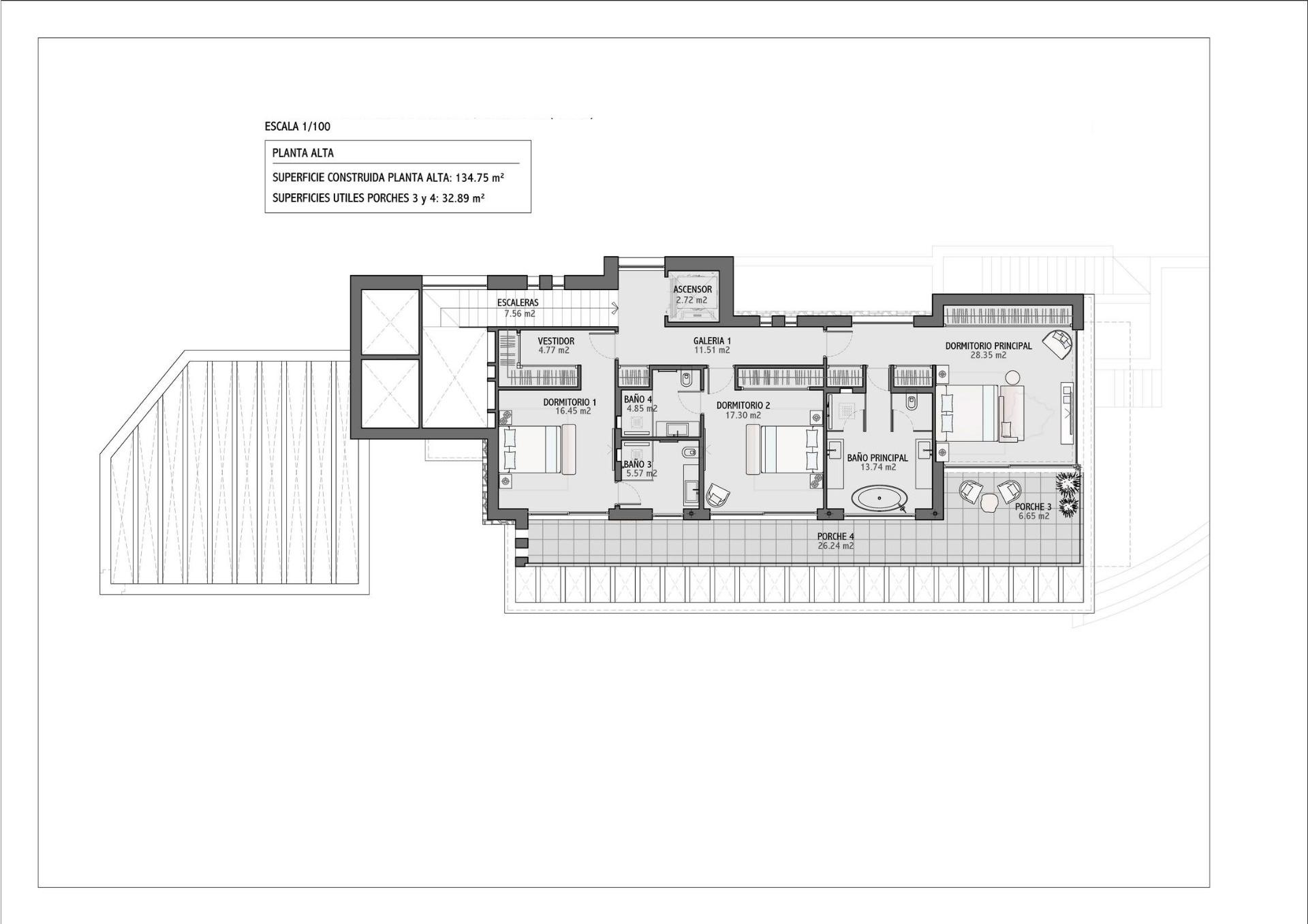 NEW BUILD VILLAS IN BENALMADENA Located in the prestigious La Capellanía area, this exclusive collection of seven Luxurious New Build villas offers unparalleled views of the Mediterranean Sea, majestic mountains, and the scenic landscapes of Mijas and Fuengirola. The Concept Our projects are characterised by cutting-edge design, prime locations, and superior quality, offering dream properties to the most discerning clientele. Situated in the heart of Benalmadena, La Capellania, a very charming and well established area, with beautiful traditional white Spanish villas and green gardens surrounding. Just 15 minutes from the airport in Malaga and 30 minutes from Marbella, this promotion is raising the area to a new level with the best from both worlds. Enjoy close proximity to beautiful beaches, world-class golf courses, gourmet restaurants, and vibrant cultural attractions. This unique villa consists of a spacious ground floor with an open-plan kitchen and living area that flows effortlessly onto expansive terraces and a chill-out area by the curved infinity pool. The upper floor features a master suite with a private gallery, along with three additional bedrooms each with en-suite bathrooms, providing ample space for family and guests. The basement includes a spacious multi-room with a bar, home cinema, and multiple bedrooms with en-suite bathrooms, all accessible via a private elevator. EXTERIOR FOUNDATIONS AND STRUCTURE • Reinforced concrete using insulated and reticular slabs. EXTERIOR ENCLOSURE • Exterior wall with ceramic bricks of 12 cm. Extruded EPS polystyrene insulation, 4 cm of insulation Rockwoll or similar and double internal plasterboard backing. ROOF • Non-passable flat roof with XPS 12 cm insulation in the covered area. • Tiled for solar panels. FACADE • White scraped monolayer coating and decorated stone walls, depending on the design specification. • Painted EXTERIOR CARPENTRY • Schüco aluminium frames with thermal bridge break, embedded in living room flooring. • Electric venecian blinds integrated into carpentry from Griesser. EXTERIOR FLOORING • Porcelanosa 100×100 cm. OUTDOOR LIGHTING • Exterior wall light fittings and garden beacons according to Exterior Design specifications (if applicable). EXTERIORS • Common garden areas: Finished according to landscaping design specification with irrigation system and lighting. • Private infinity swimming pool: According to design project. INTERIOR PARTITIONS • Acoustic brick, double, reinforced, with thermal and acoustic insulation “rockwool” if appropriate in the areas defined by the interior design specification. • False ceilings throughout. • Sound reducing ceilings in living areas. INTERIOR FLOORING • Porcelanosa 100×100 cm and parquet wooden floors in the bedrooms. • 7 cm skirting integrated into the walls. INDOOR LIGHTING • Interior LED throughout. • Indirect LED light in curtain boxes and sound reducing ceiling in living room. • Switches and sockets: Bticino Living Now PAINTWORK • Smooth white RAL 9010. BATHROOM COVERINGS • Top of the range ceramics from Porcelanosa. HEATING AND AIR CONDITIONING • Air conditioning via ducts with direct expansion heat pump. • Air Zone •Electric towel heater in bathrooms. • Under floor heating with water throughout. • Electric underfloor heating in bathrooms. • Aerothermal electric heater. • Installation of air renewal and extraction. In the immediate surroundings there are all the services available, such as restaurants, golf, supermarkets, schools, health centres, Renfe train station, etc. Benalmádena is one of the most dynamic and attractive towns on the Costa del Sol. Its mild climate all year round, beautiful beaches, wide range of leisure activities, infrastructures and good communications make it the perfect place for those who wish to invest in quality of life and wellbeing. 1007